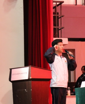 新团员代表常祎发言并号召全体团员:“作为社会主义接班人的我们更应当了解所肩负的责任,不能放慢脚步,不负于共青团的称号,不愧对老师对我们的信任,成为一名优秀的共青团员。”