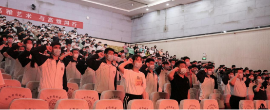 在场的新、老团员们一起重温入团誓词,铿锵有力的宣誓声在学术报告厅内回荡。在庄重地举起拳头的那一刻,熟悉的誓词,让老团员回忆起当年入团时的神圣感,新团员也明确了自己肩上的责任与使命,青春的誓言高昂雄浑,表达了同学们对共青团组织的无限向往和为团组织增光添彩的豪迈激情。