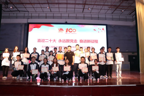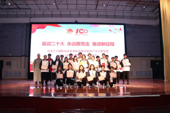 为表彰先进,树立典型,在本次入团仪式上由学院副院长靳录洋同志宣布了荣获学院2021年度“优秀共青团员”“优秀共青团干部”“五四红旗团支部”的先进集体和优秀个人获奖名单;工会主席王胜利同志宣布了荣获兵团级“我爱我的祖国·书画弘法治”书画比赛和“与法同行”主题征文获奖名单。获奖代表依次上台领奖,与会领导为获奖师生代表颁奖并合影留念。